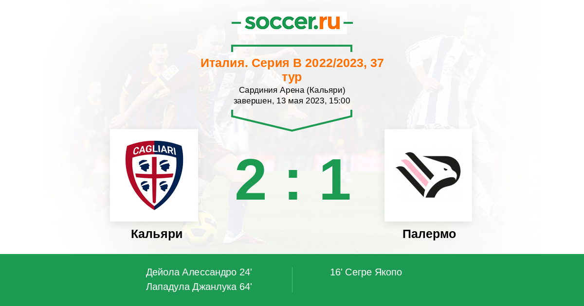 64' (2:1) Лападула Джанлука (9) (Дейола Алессандро (14))