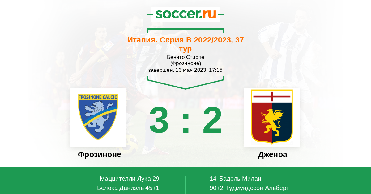 Протокол матча Фрозиноне против Дженоа