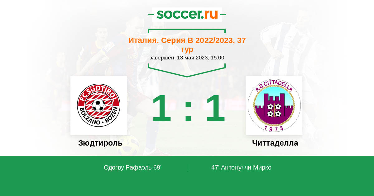 69' (1:1) Одогву Рафаэль (90) (Ровер Маттео (18))