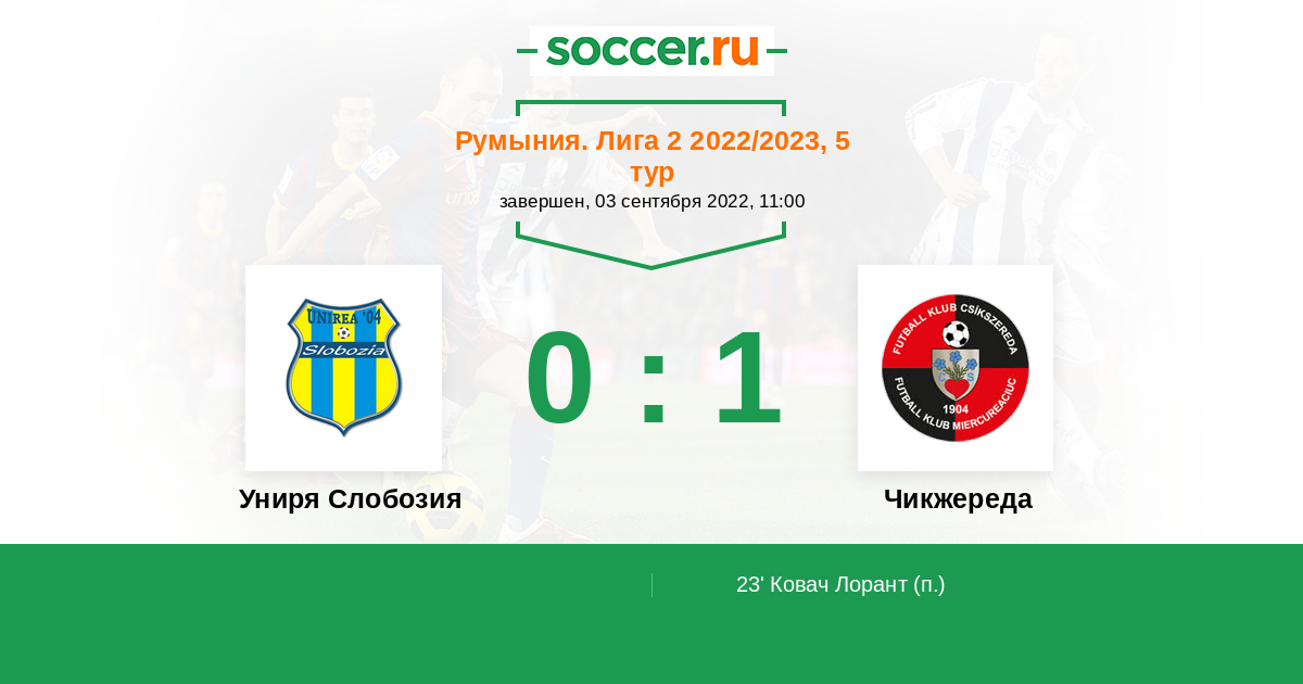 Протокол матча Униря Слобозия против Меркуря-Чук Чикжереда