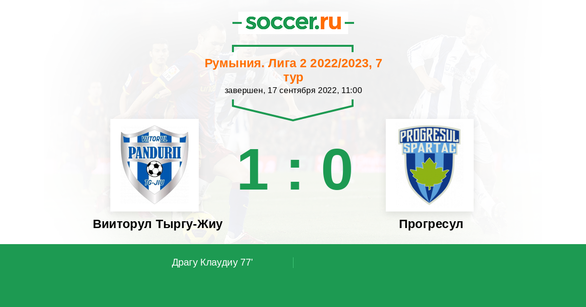 Протокол матча Вииторул Тыргу-Жиу против Прогресул