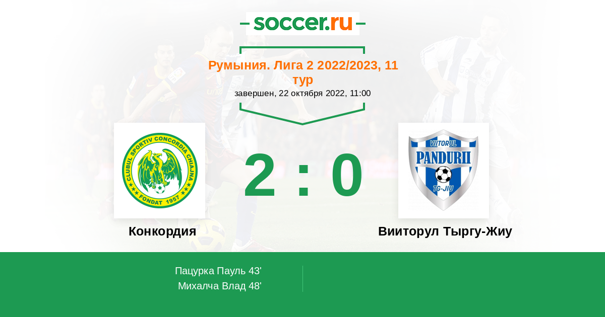 Протокол матча Конкордия против Вииторул Тыргу-Жиу