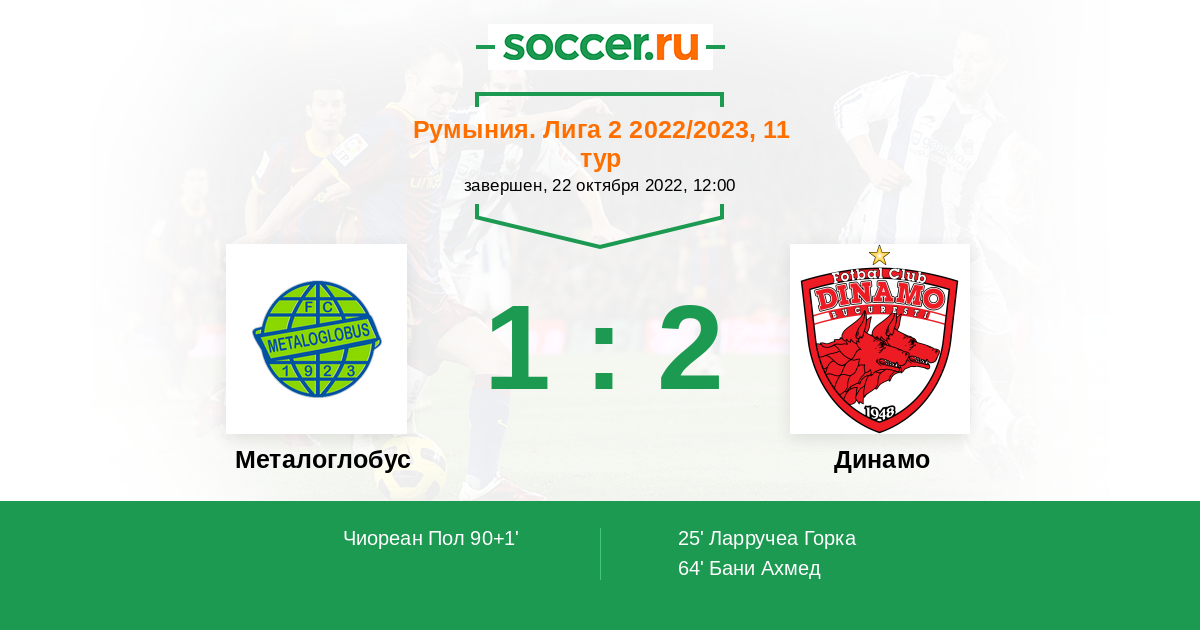 Протокол матча Металоглобус против Динамо