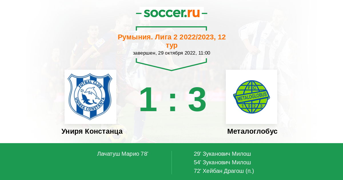 Протокол матча Униря Констанца против Металоглобус