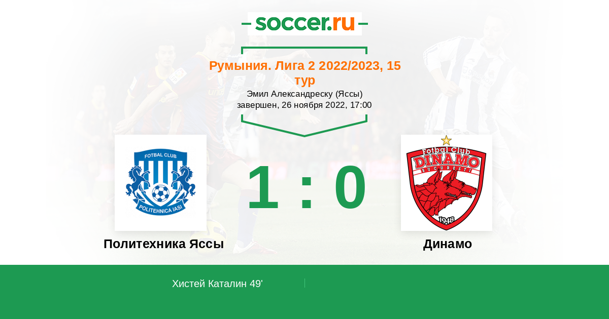 Протокол матча Политехника Яссы против Динамо