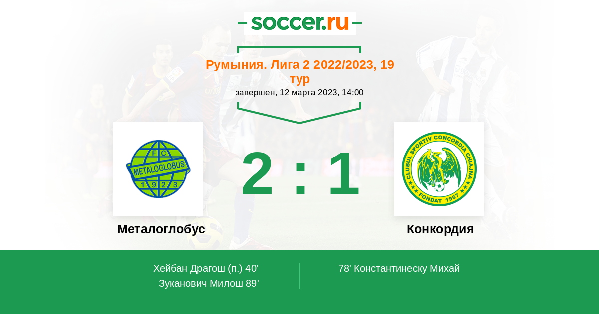 Протокол матча Металоглобус против Конкордия