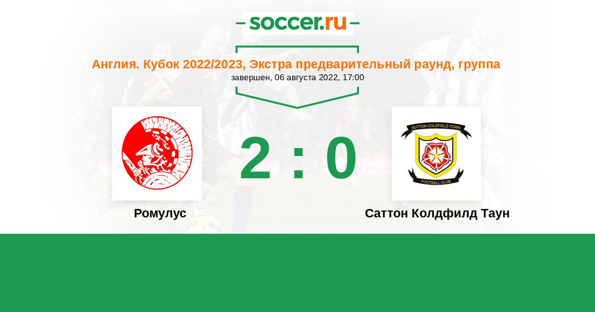 Саттон Колдфилд Таун 2:0 2:0 0:0