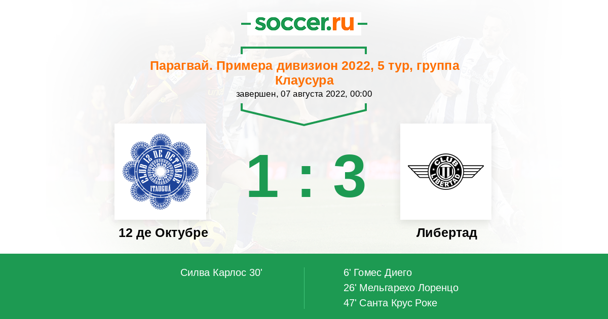 Протокол матча 12 де Октубре против Либертад