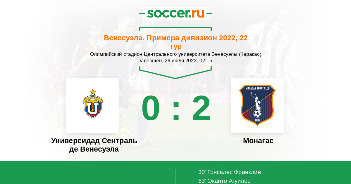 Протокол матча УСВ против Монагас