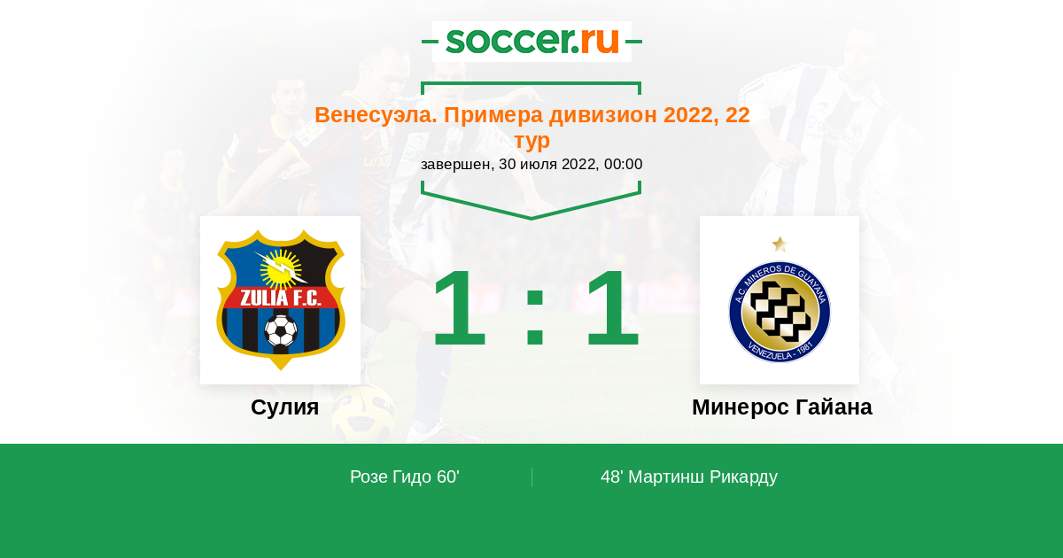 Протокол матча Сулия против Минерос Гайана