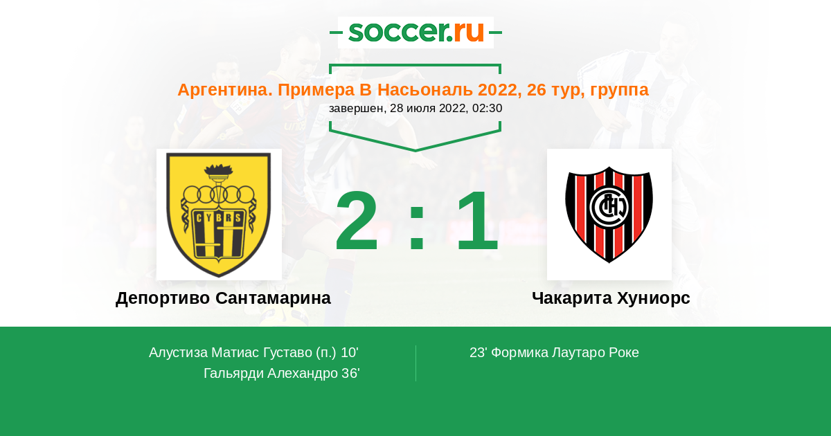 Протокол матча Депортиво Сантамарина против Чакарита Хуниорс