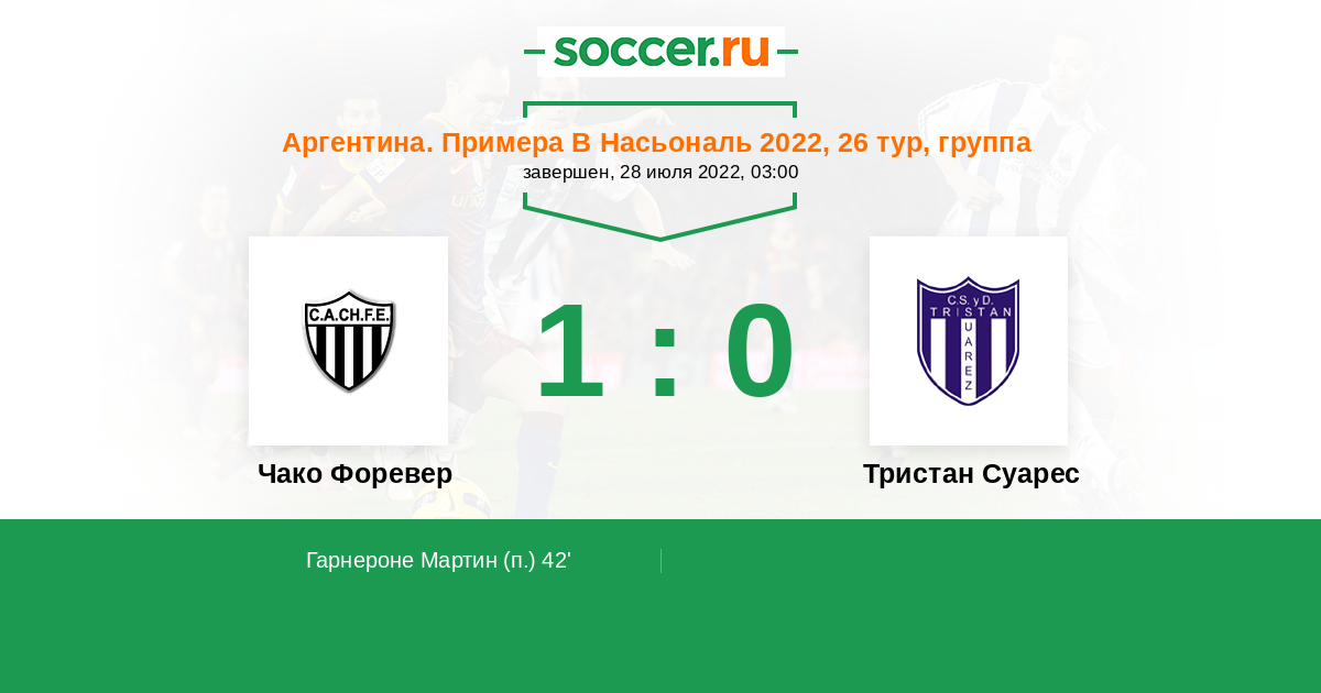 Протокол матча Чако Форевер против Тристан Суарес