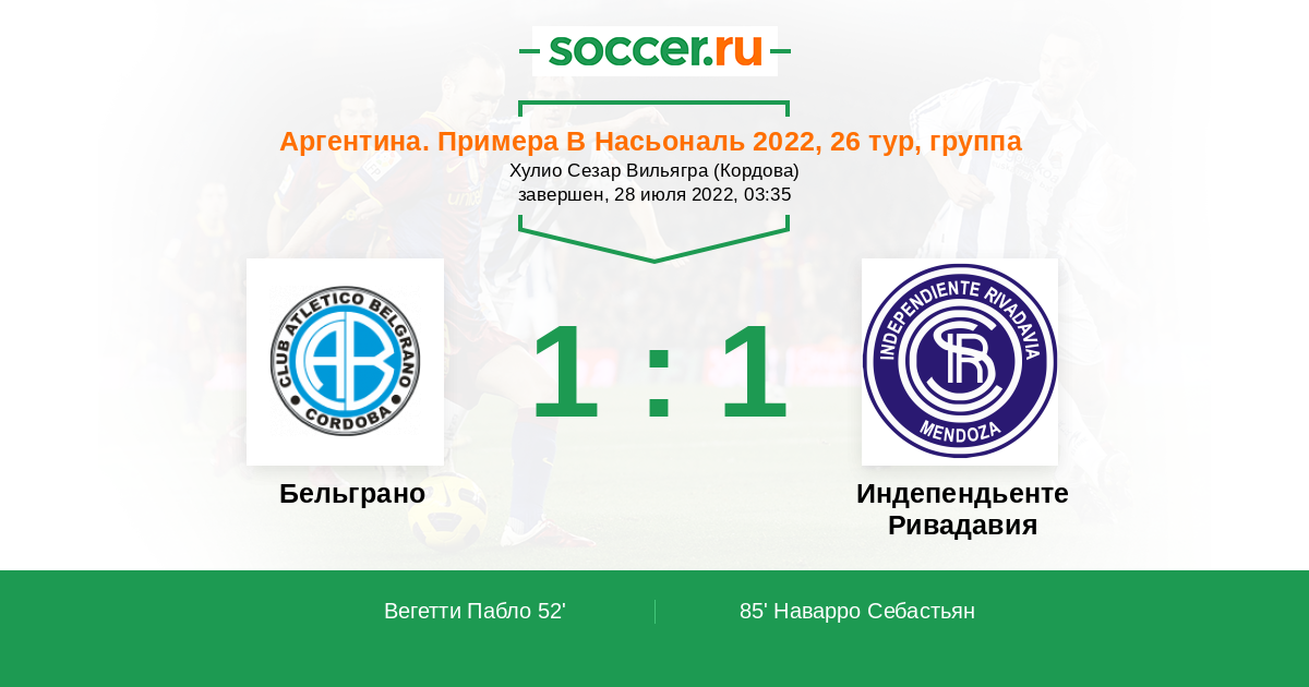 Протокол матча Бельграно против Индепендьенте Ривадавия