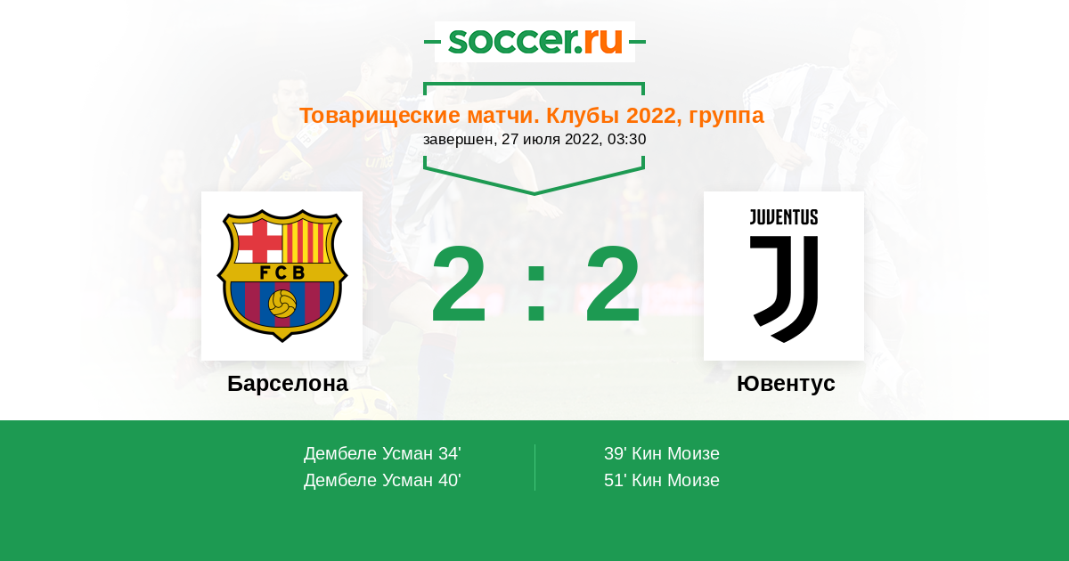 Протокол матча Барселона против Ювентус
