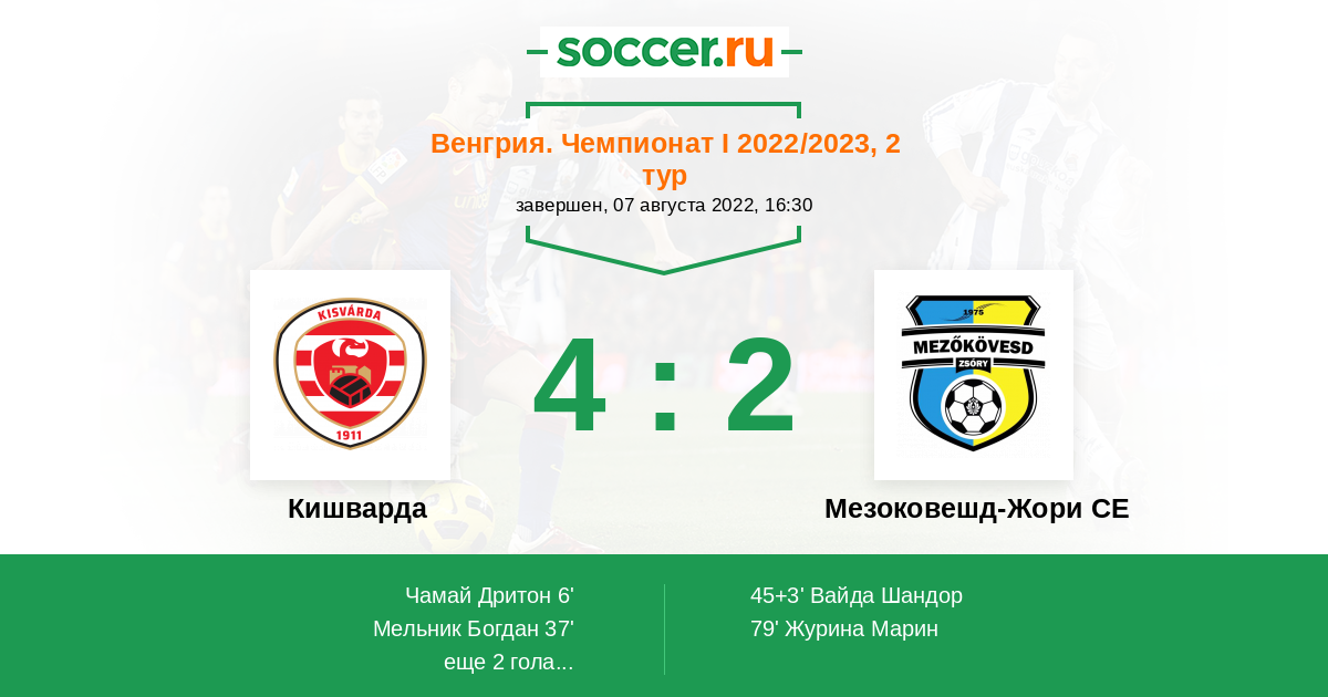 Протокол матча Кишварда против Мезоковешд-Жори СЕ