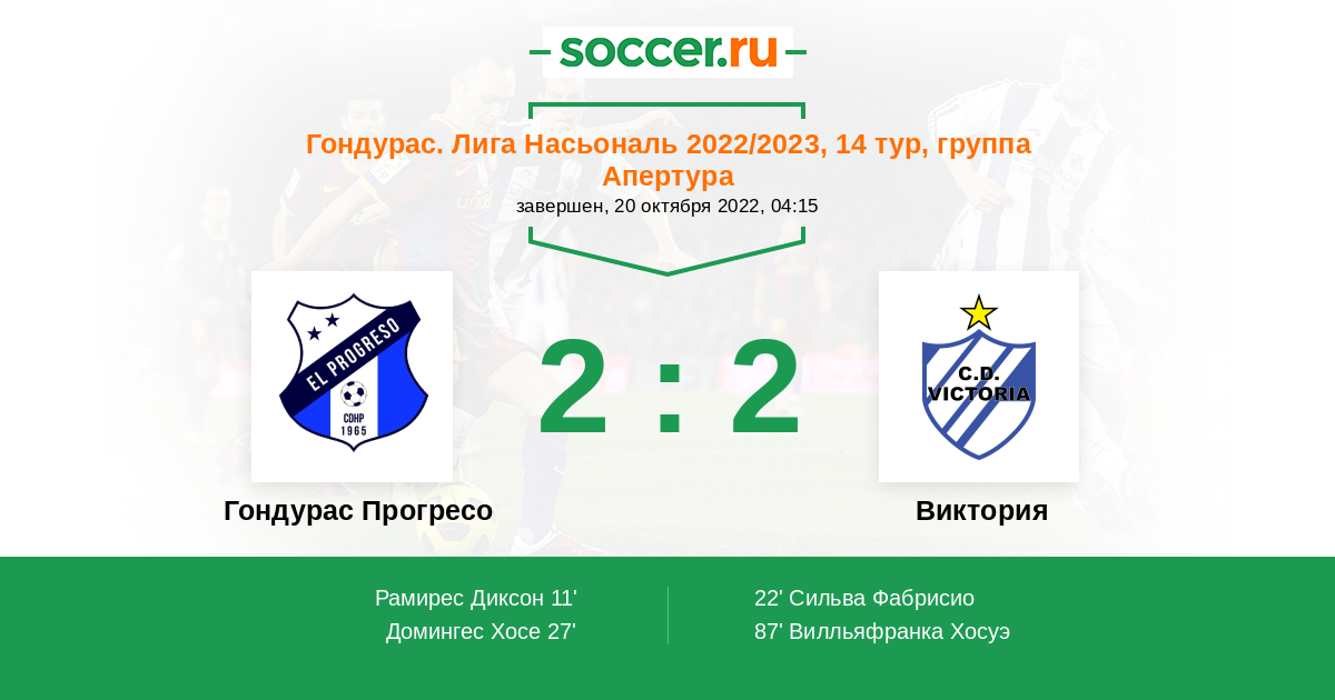 Протокол матча Гондурас Прогресо против Виктория