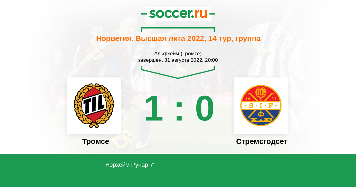 7' (1:0) Норхейм Рунар (23) (Вестерлунн Никлас (19))