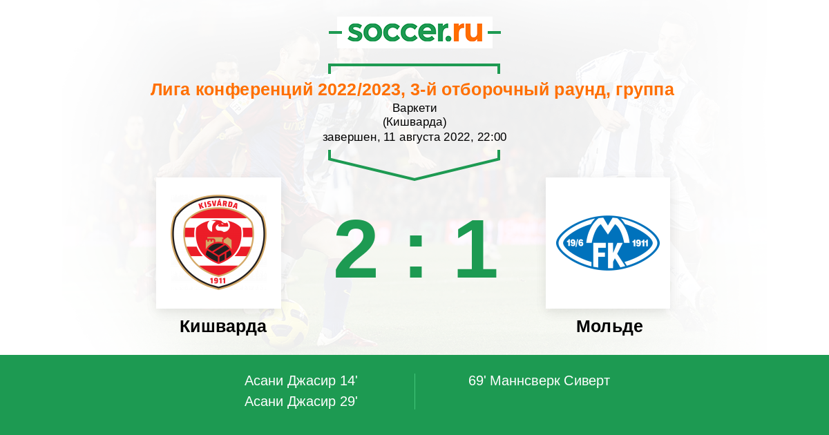 Протокол матча Кишварда против Мольде