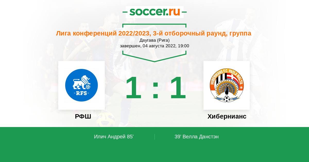 Протокол матча РФШ против Хибернианс