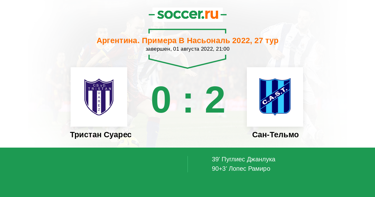 Протокол матча Тристан Суарес против Сан-Тельмо