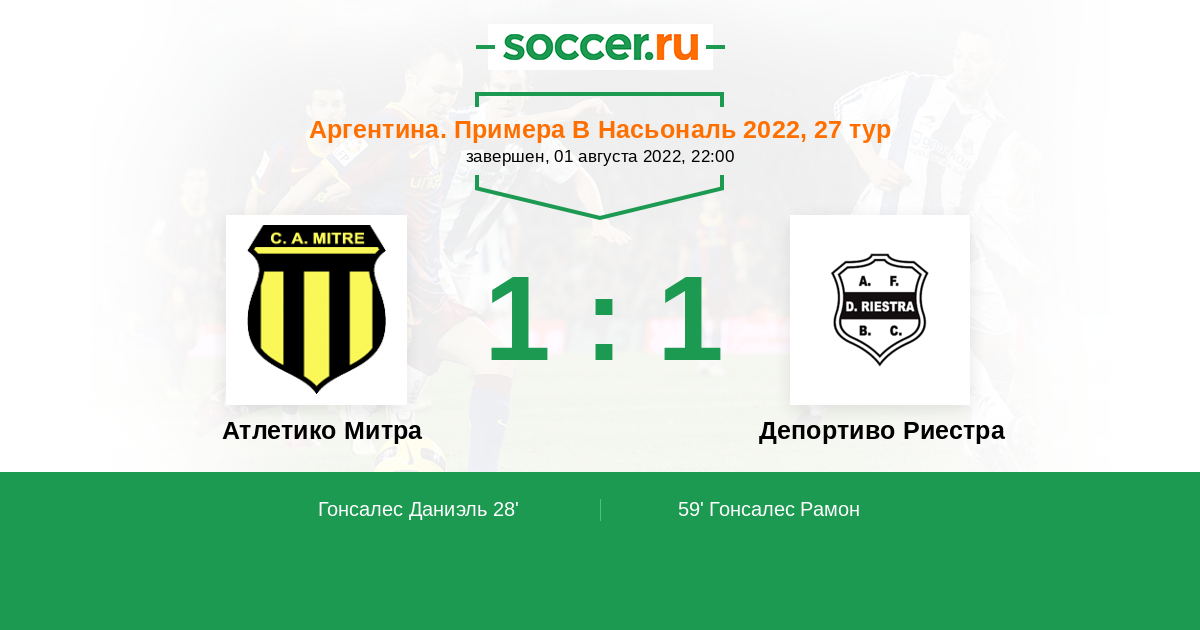 Протокол матча Атлетико Митра против Депортиво Риестра