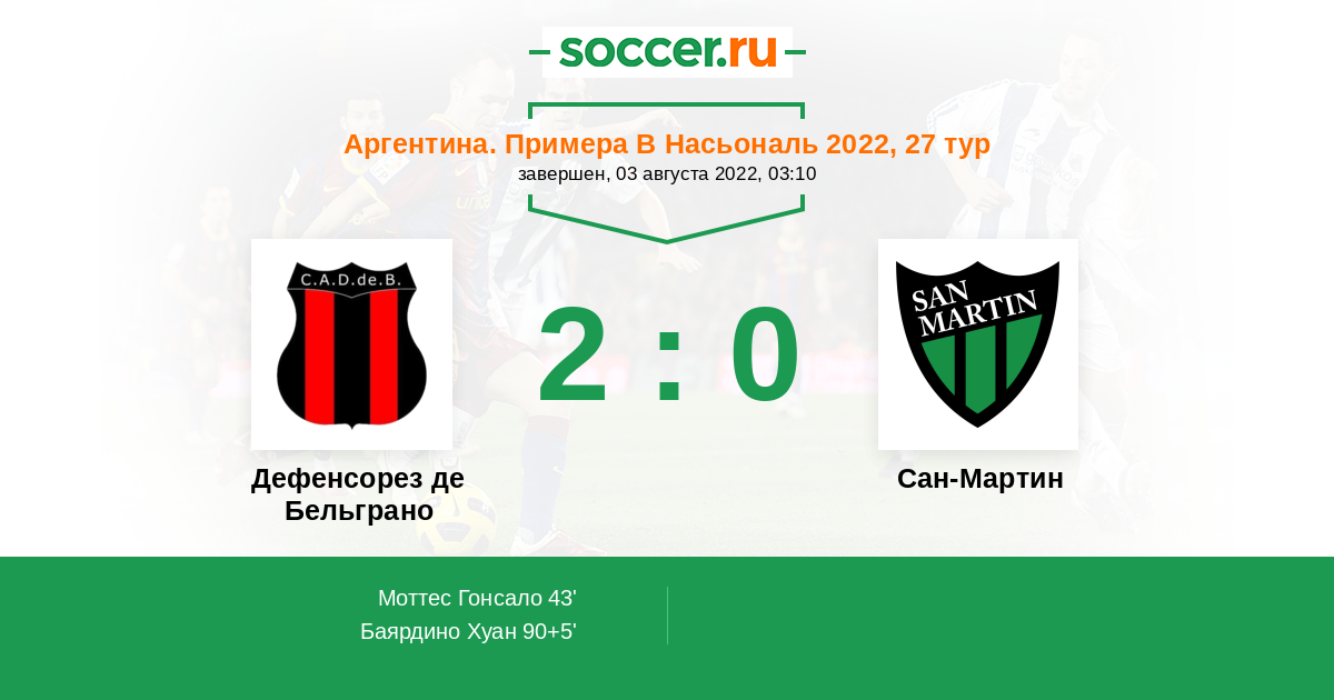 Протокол матча Дефенсорез де Бельграно против Сан-Мартин