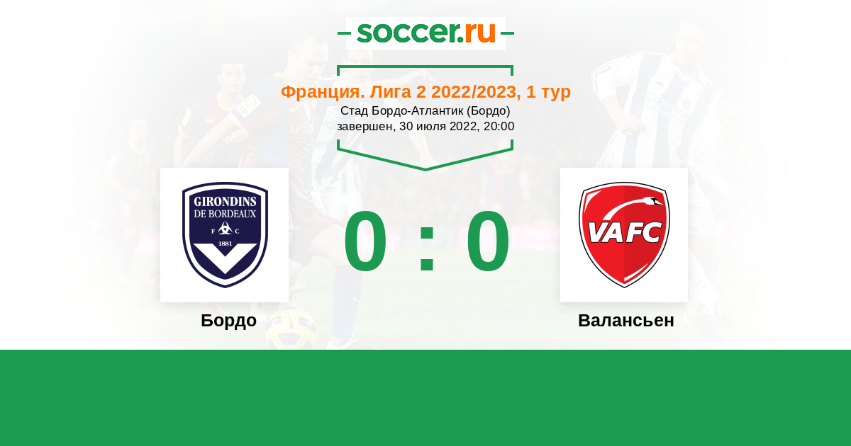 Протокол матча Бордо против Валансьен