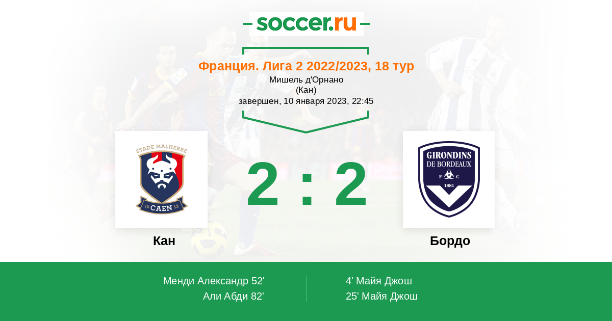 Протокол матча Кан против Бордо