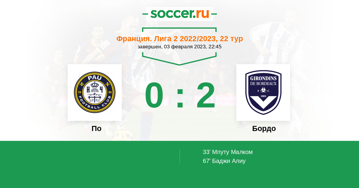 33' (0:1) Мпуту Малком (4) (Н'Симба Витал (14))