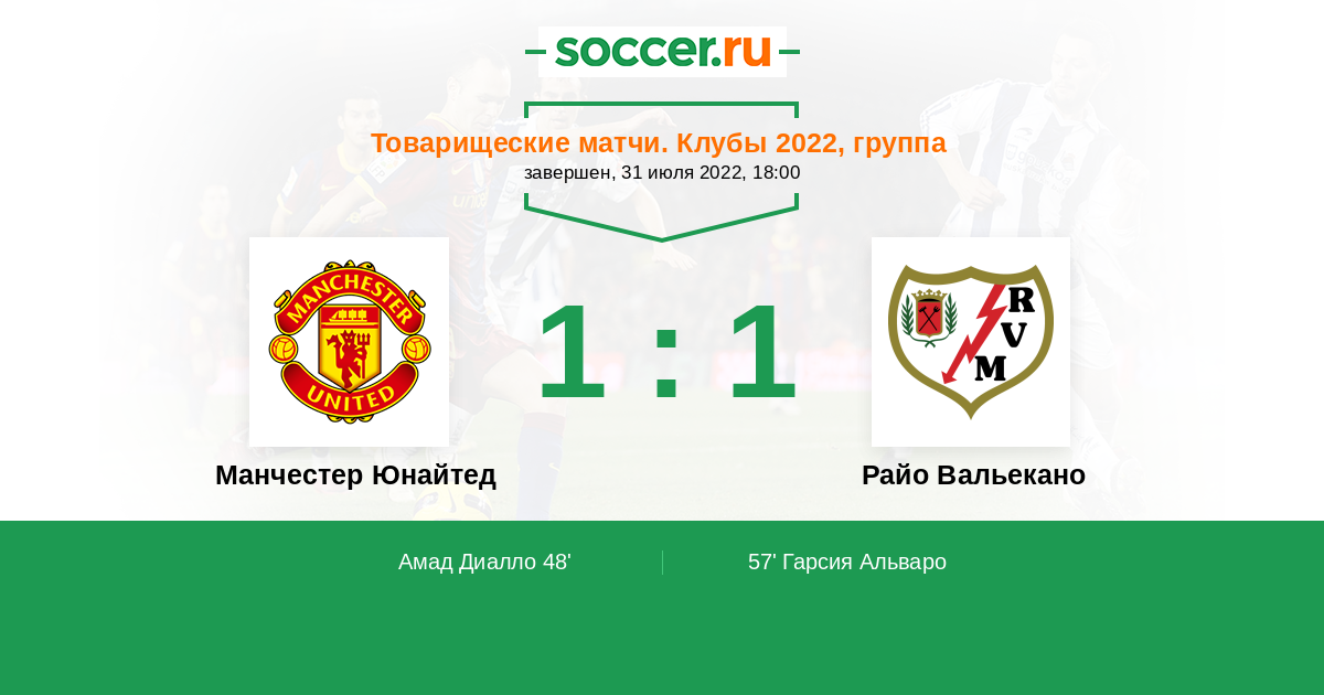 Протокол матча Манчестер Юнайтед против Райо Вальекано