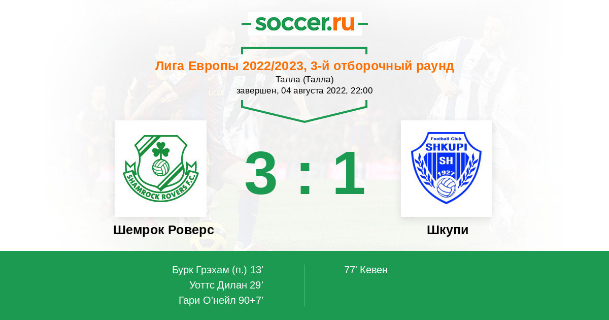 Протокол матча Шемрок Роверс против Шкупи