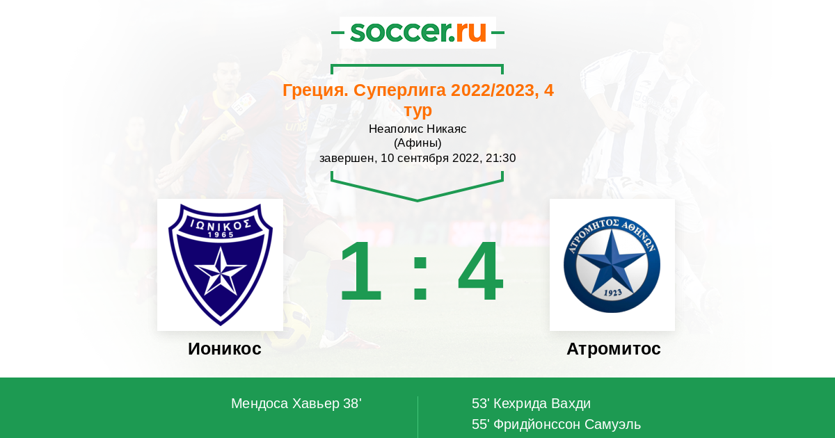 Протокол матча Ионикос против Атромитос