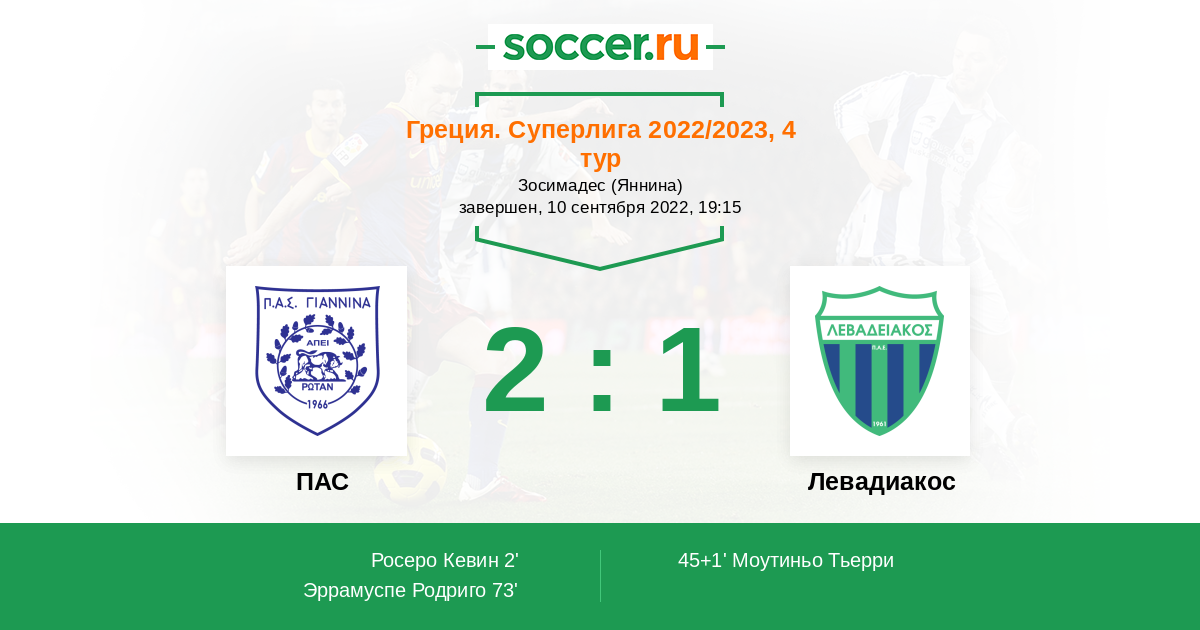 Протокол матча ПАС против Левадиакос