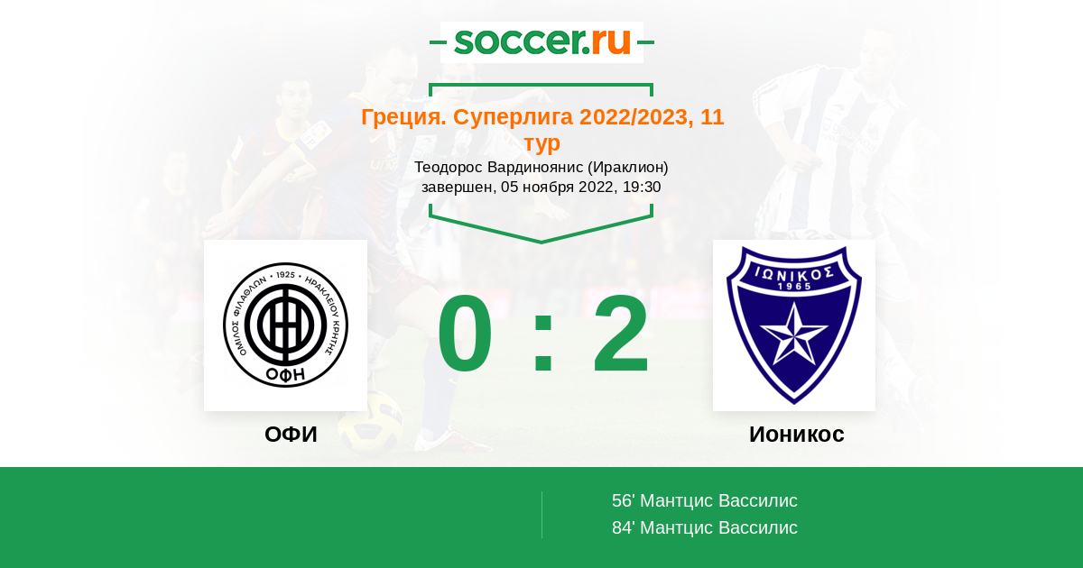 56' (0:1) Мантцис Вассилис (99) (Ловера Максимилиано (34))