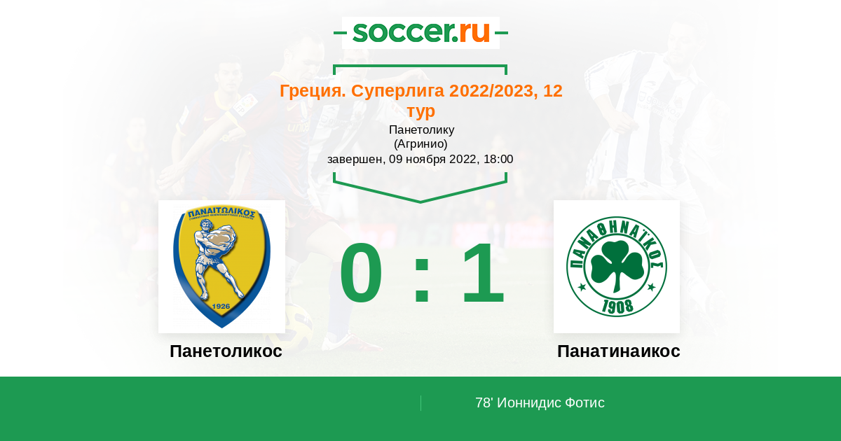Протокол матча Панетоликос против Панатинаикос