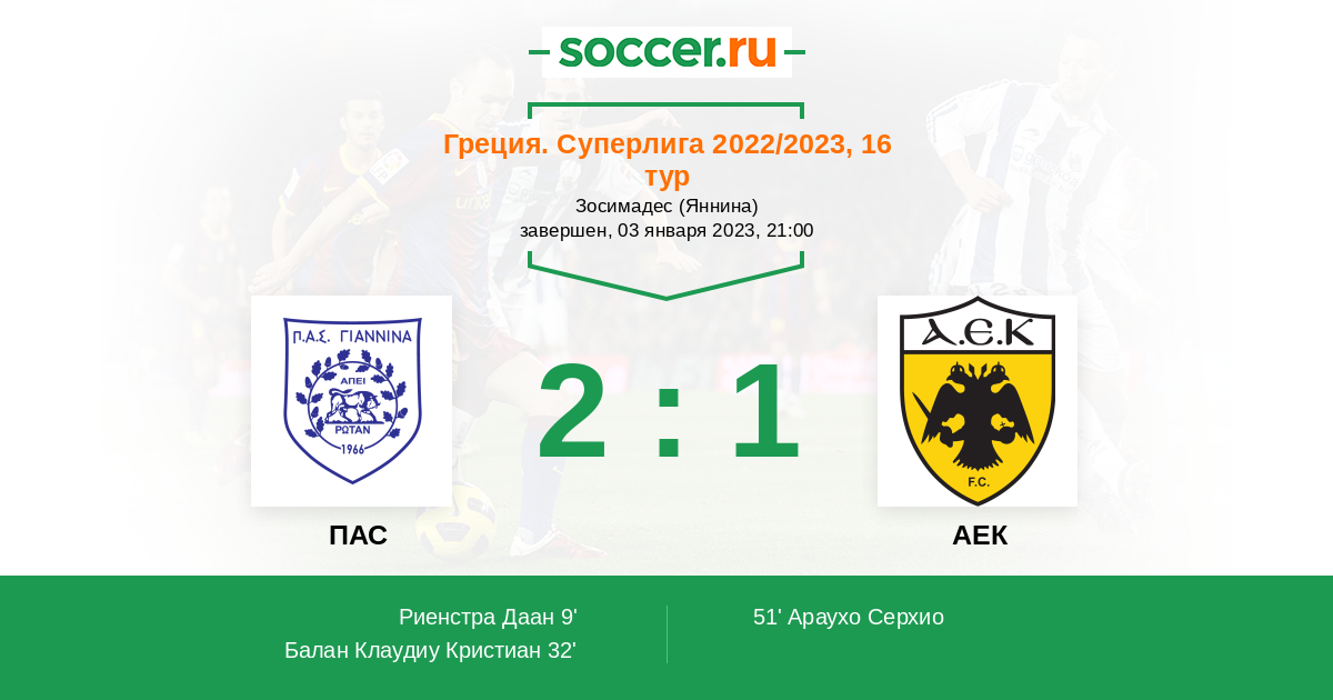 Протокол матча ПАС против АЕК