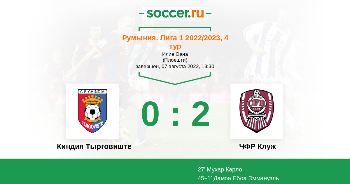 Протокол матча Киндия Тырговиште против ЧФР Клуж