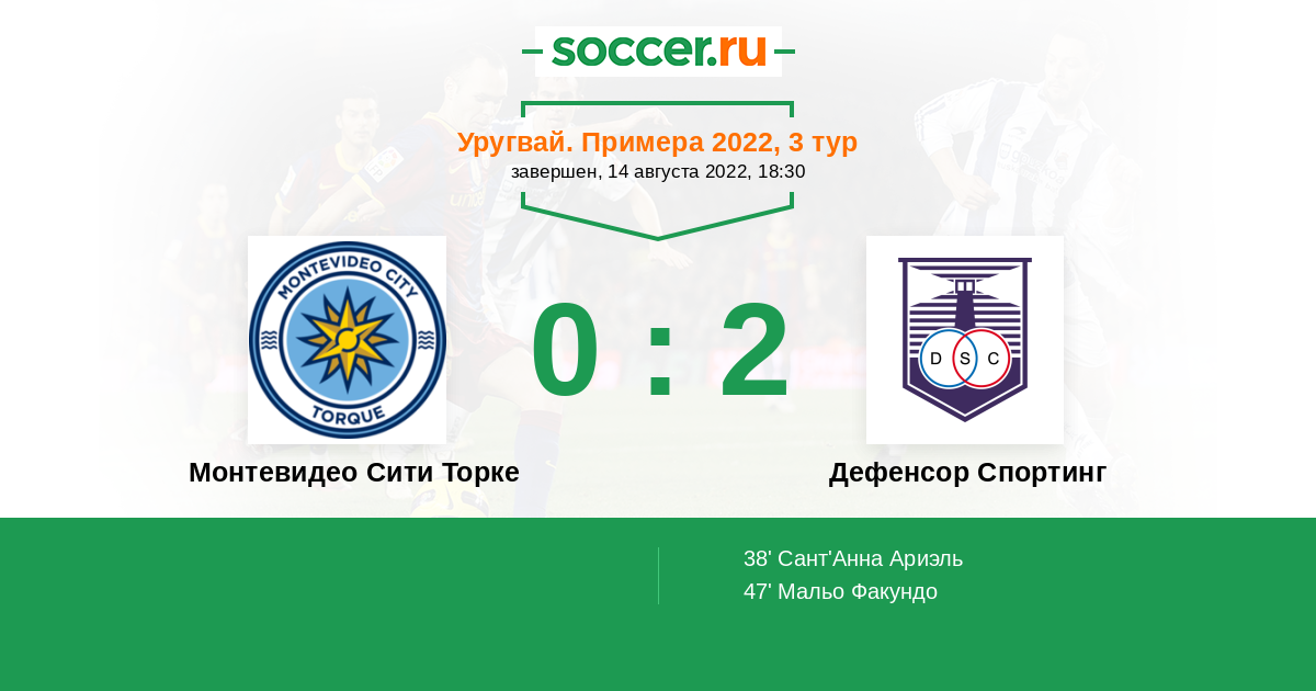 Протокол матча Монтевидео Сити Торке против Дефенсор Спортинг