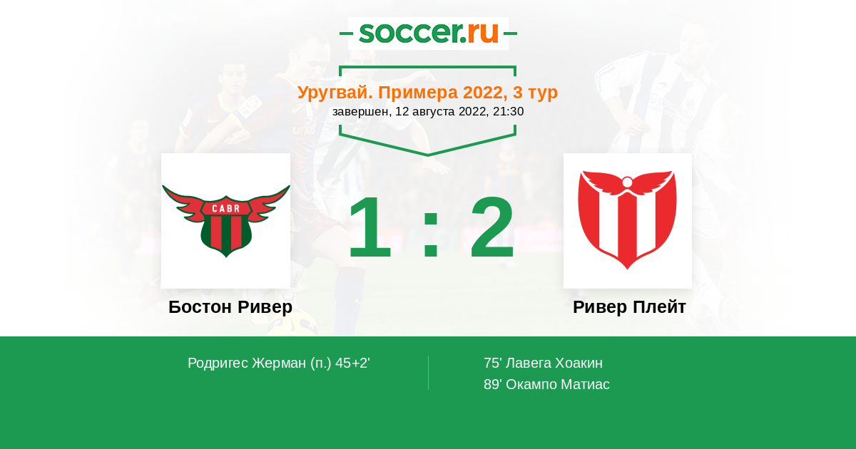Протокол матча Бостон Ривер против Ривер Плейт