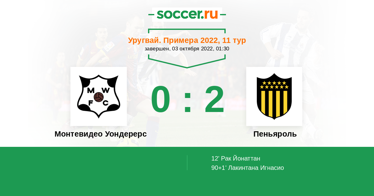 Протокол матча Монтевидео Уондерерс против Пеньяроль