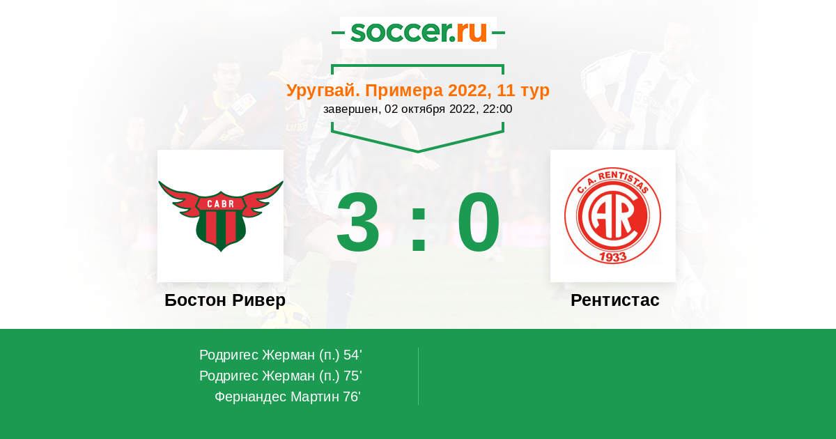 Протокол матча Бостон Ривер против Рентистас