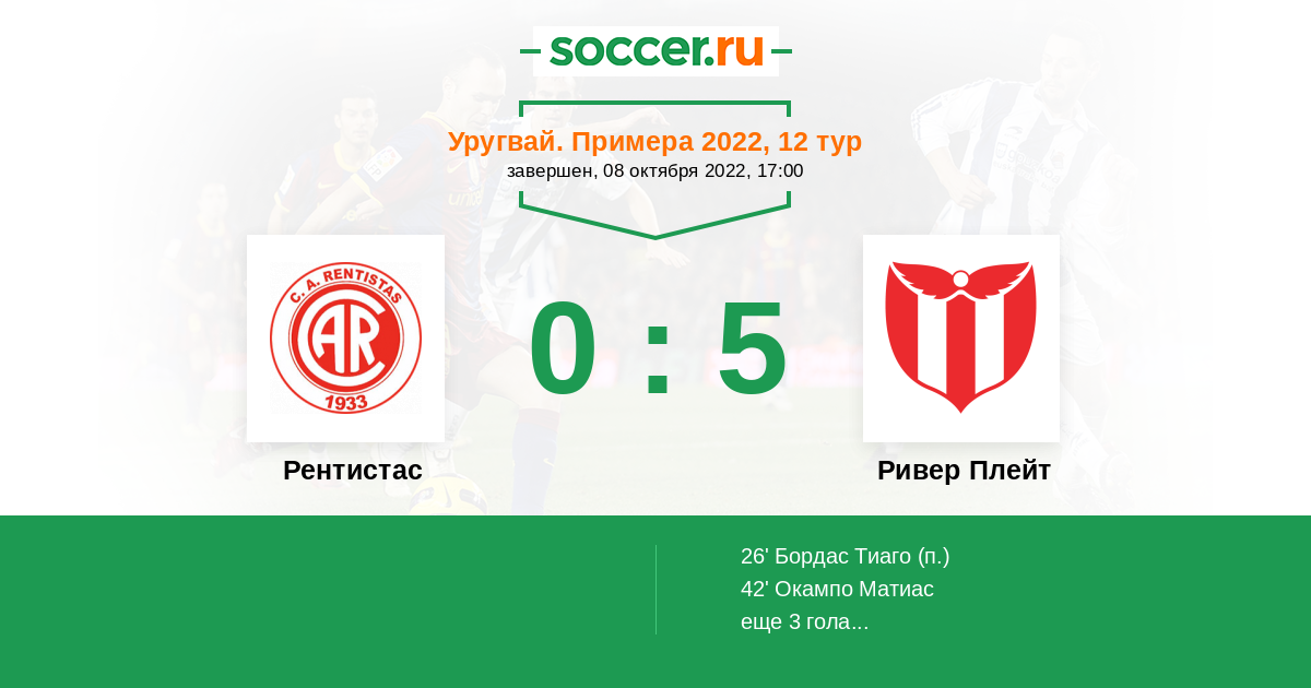 Протокол матча Рентистас против Ривер Плейт