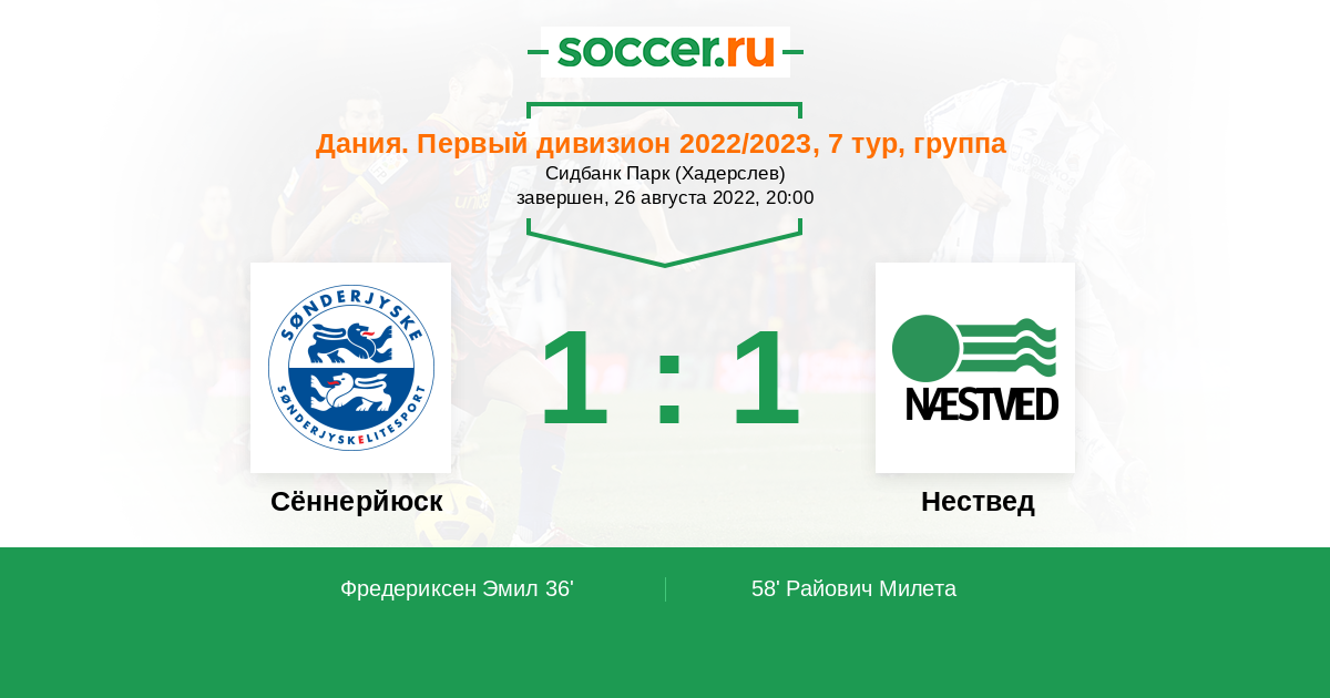 Протокол матча Сённерйюск против Нествед
