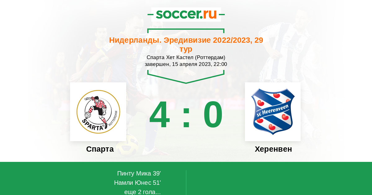 Стадион Спарта Хет Кастел (Роттердам), зрителей: 10420