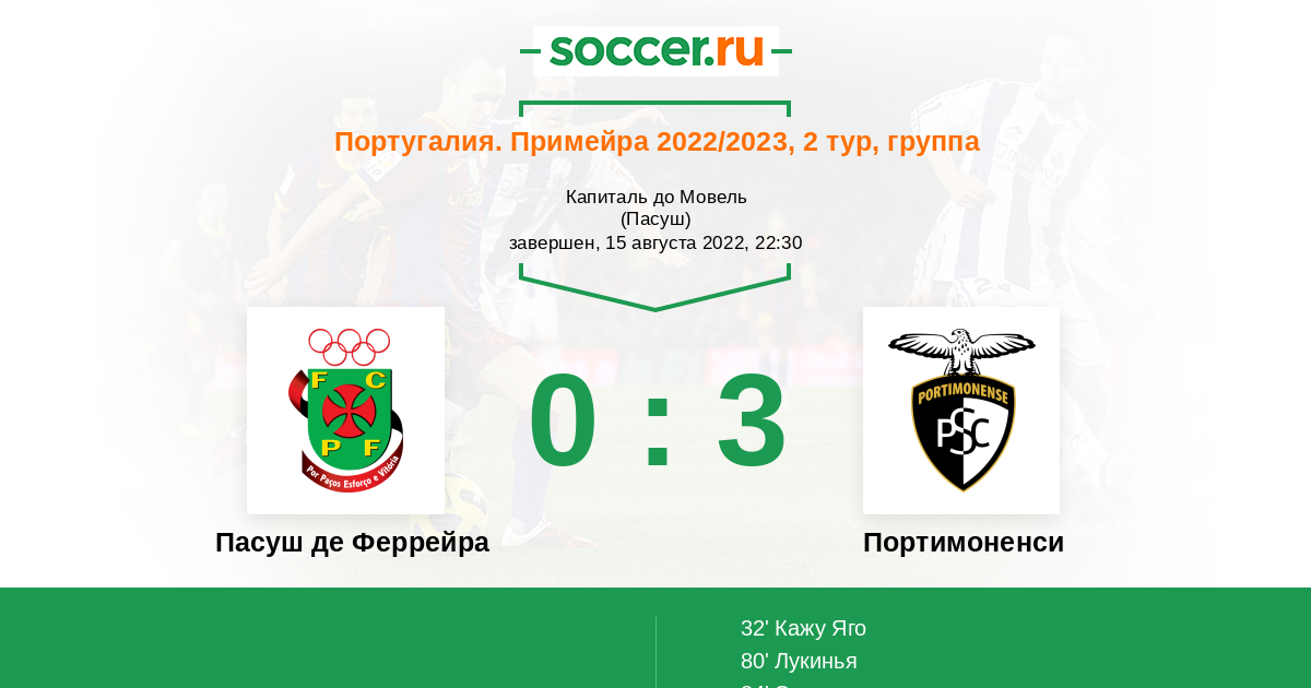 Протокол матча Пасуш де Феррейра против Портимоненси