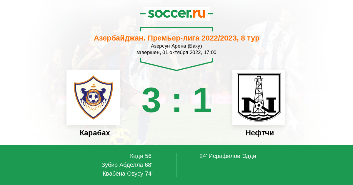Протокол матча Карабах против Нефтчи