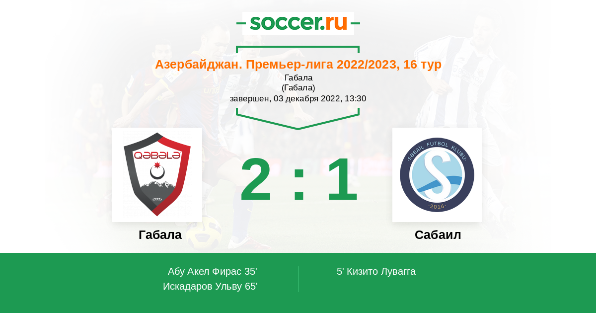 Протокол матча Габала против Сабаил