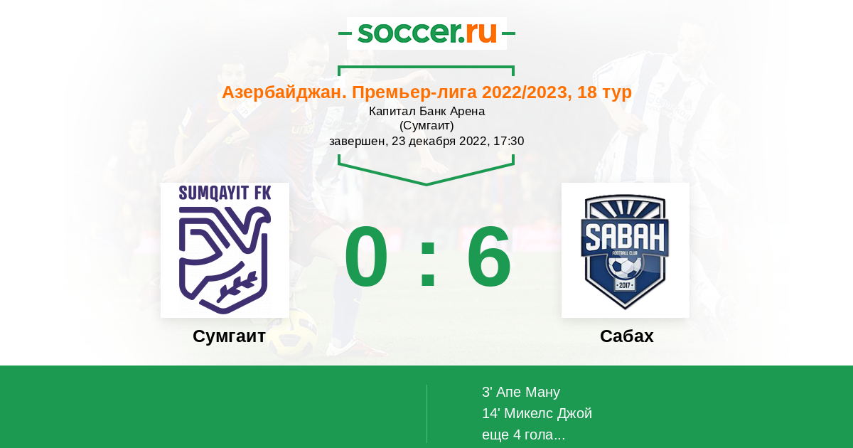Протокол матча Сумгаит против Сабах