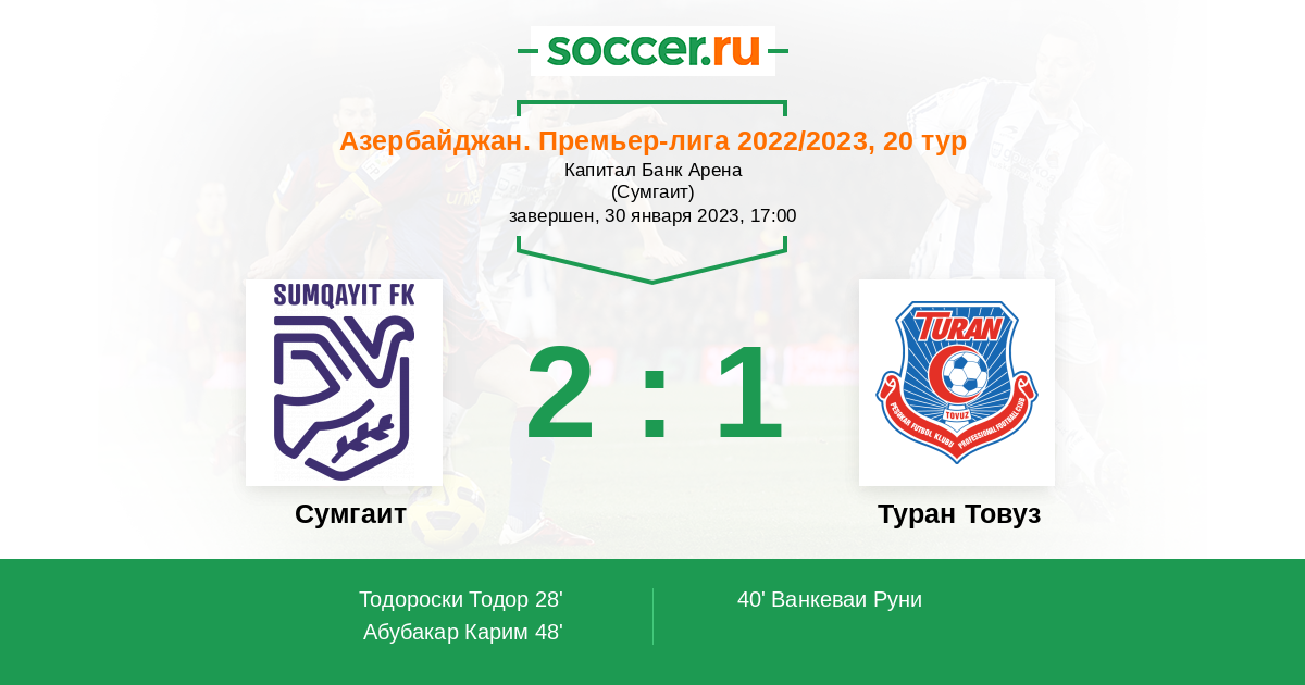 Протокол матча Сумгаит против Туран Товуз