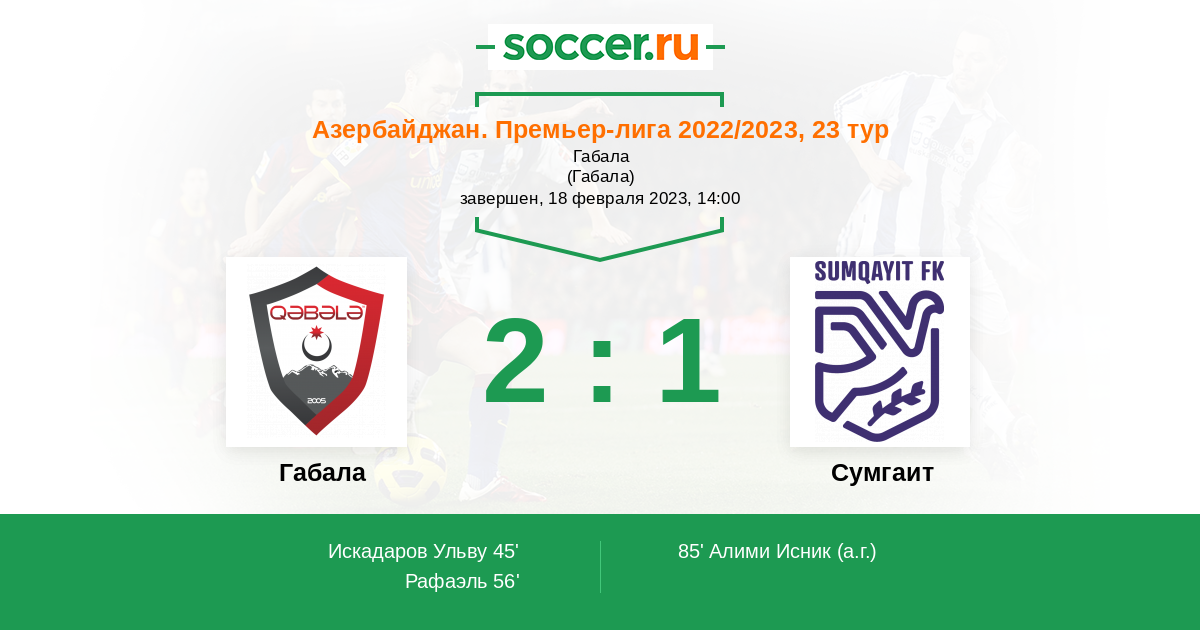 Протокол матча Габала против Сумгаит
